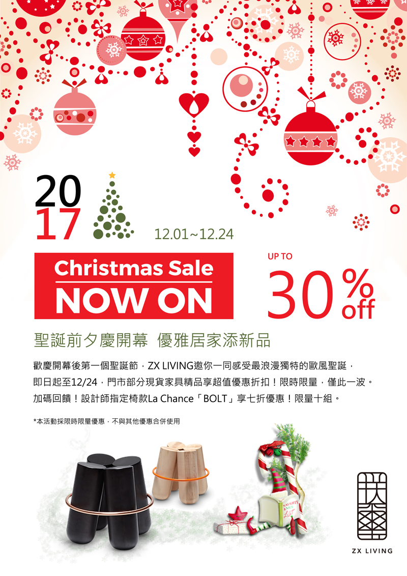 即日起至12/24,門市部分現貨家具精品享超值優惠折扣!限時限量,僅此一波。