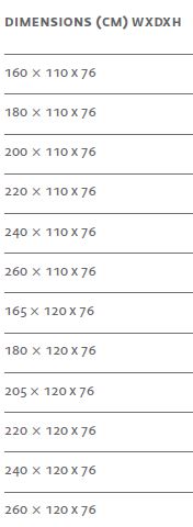 W 160-260 cm H 76 cm D 110, 120 cm
