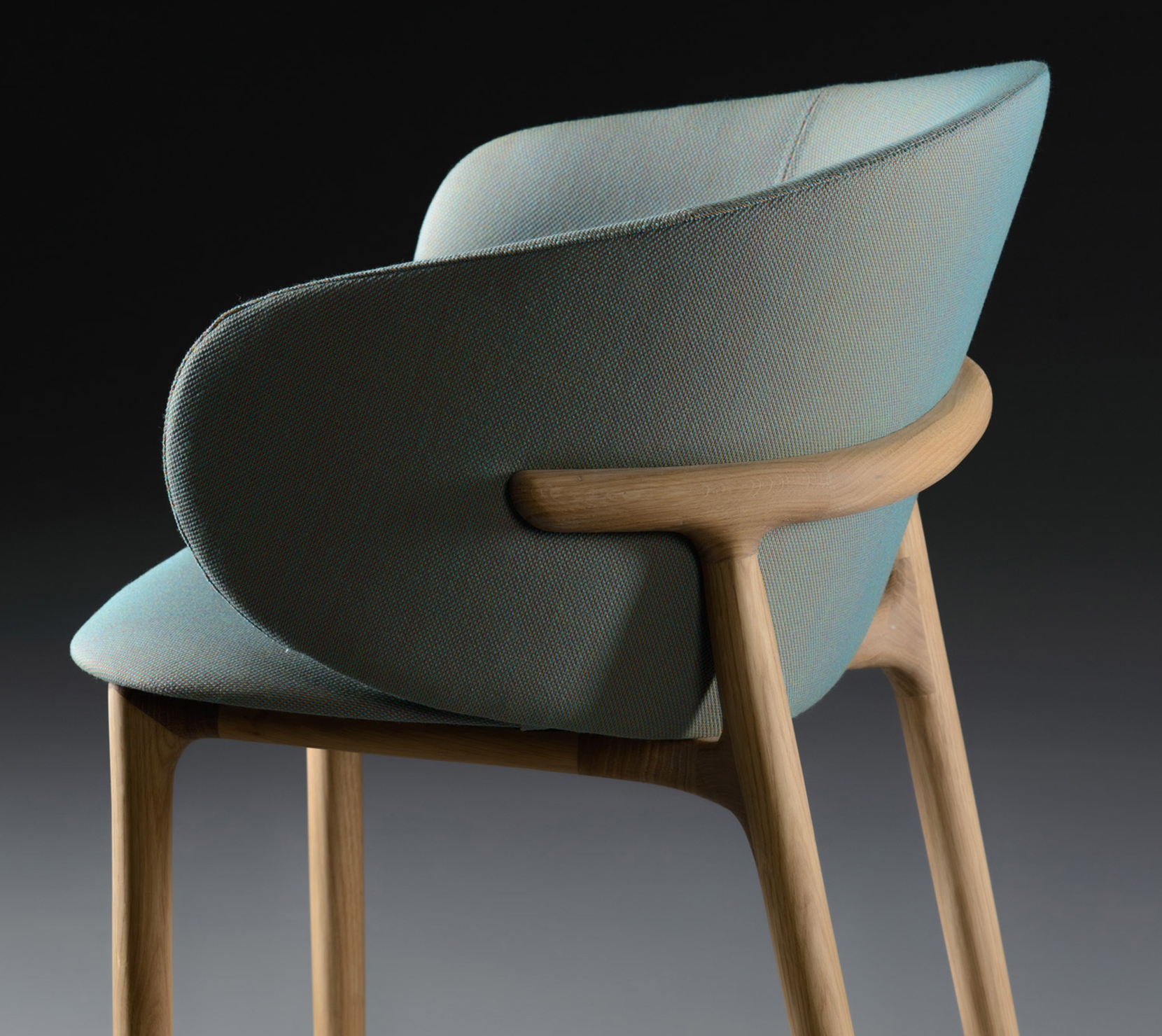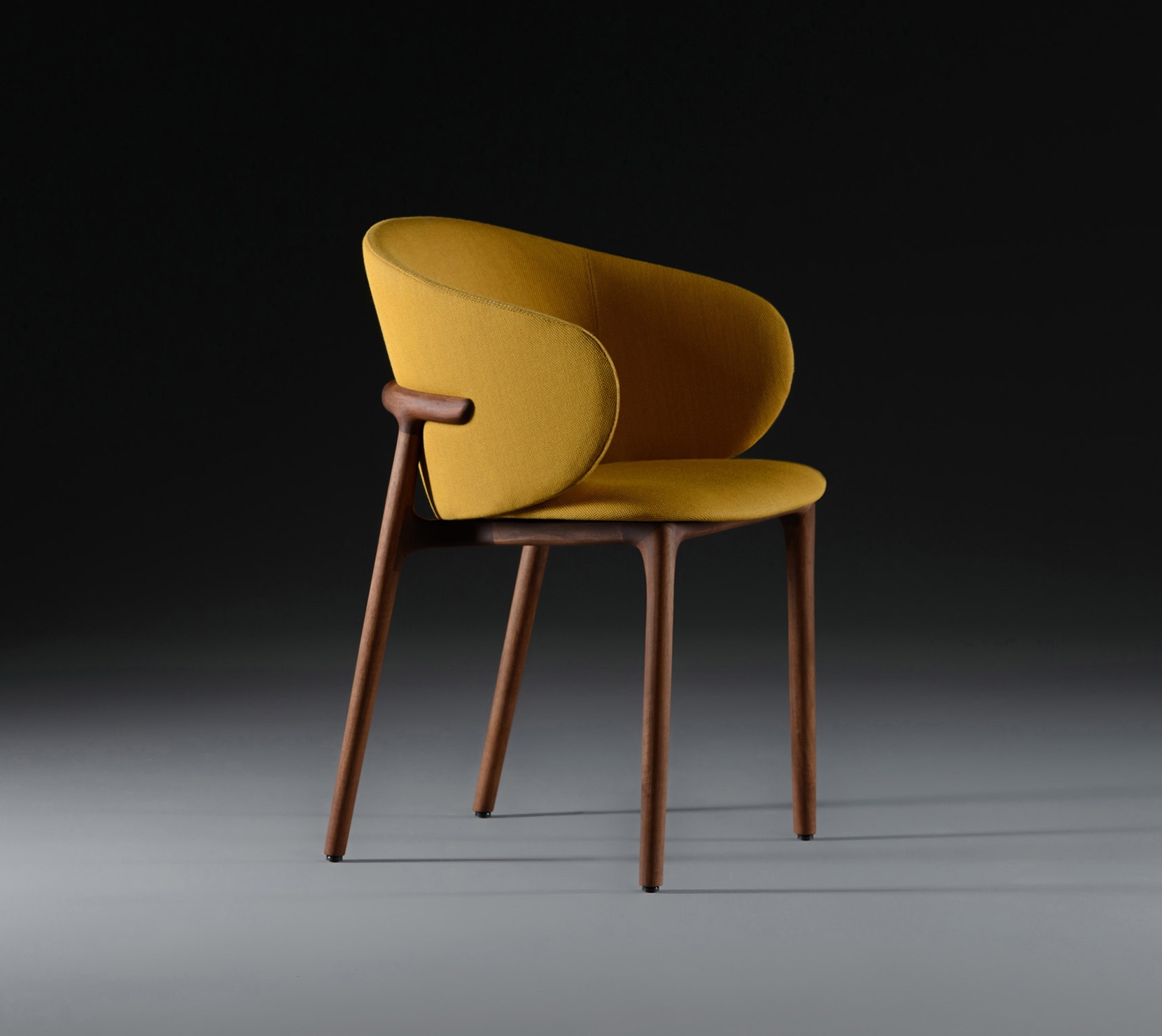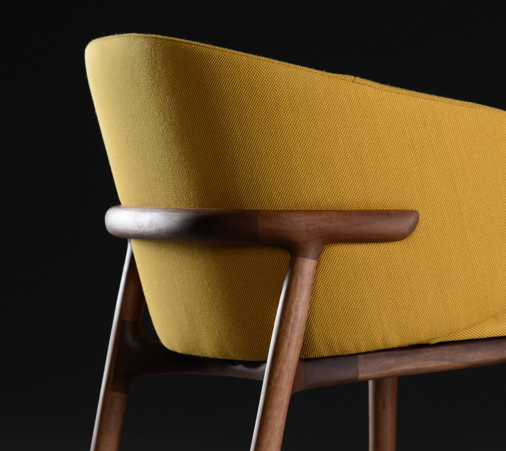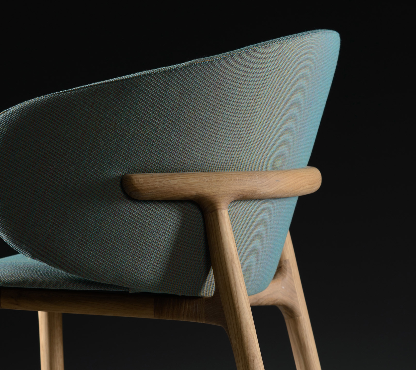 Mela 是張個性鮮明的扶手椅,將一體成形的椅墊結構與木頭支架結合成我們熟知的椅子造型,創造出獨具美感的一張椅子。