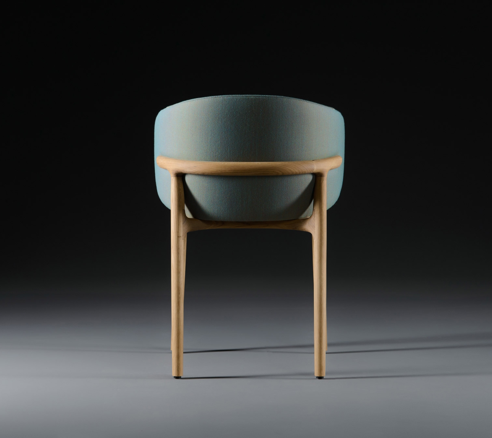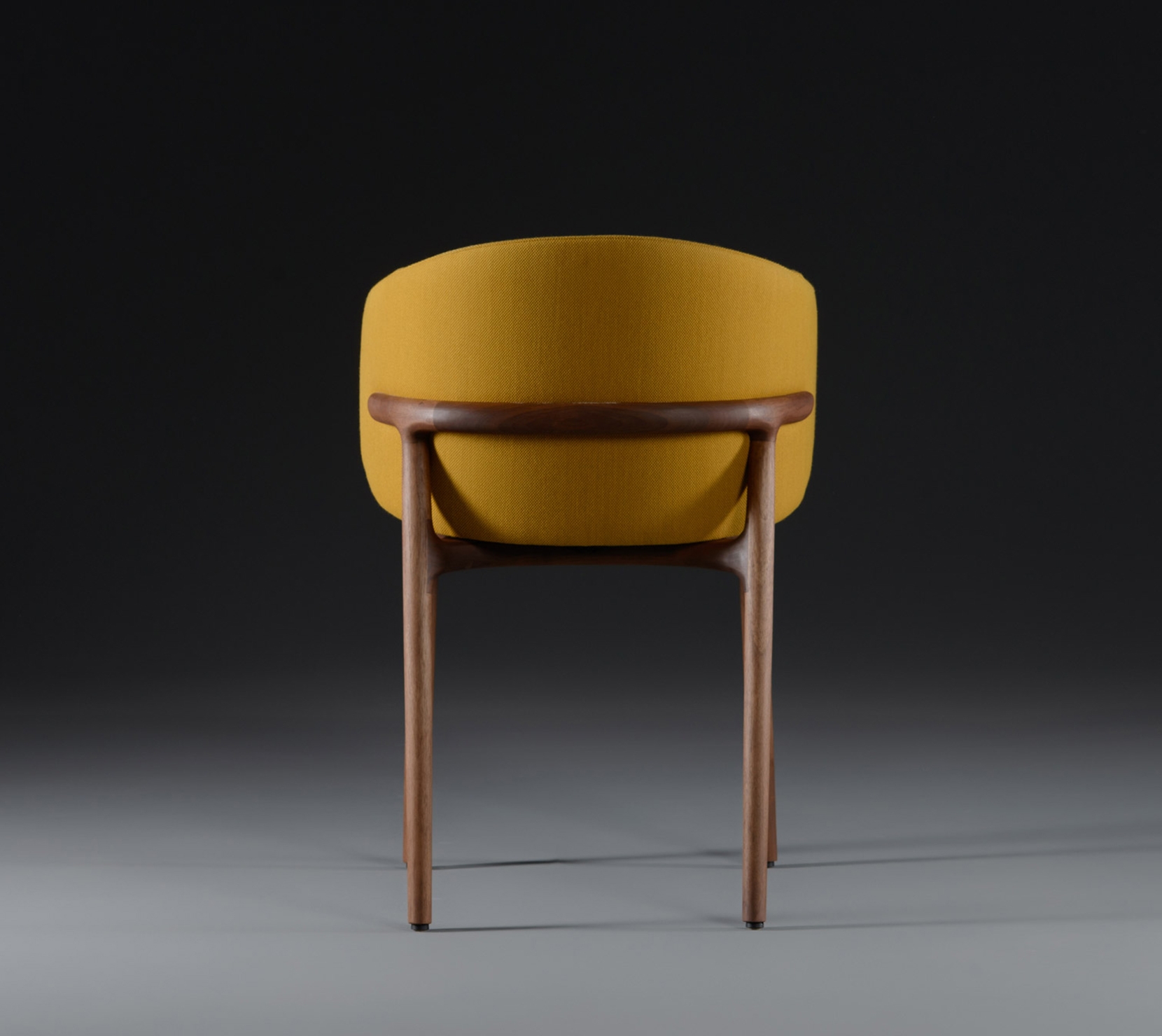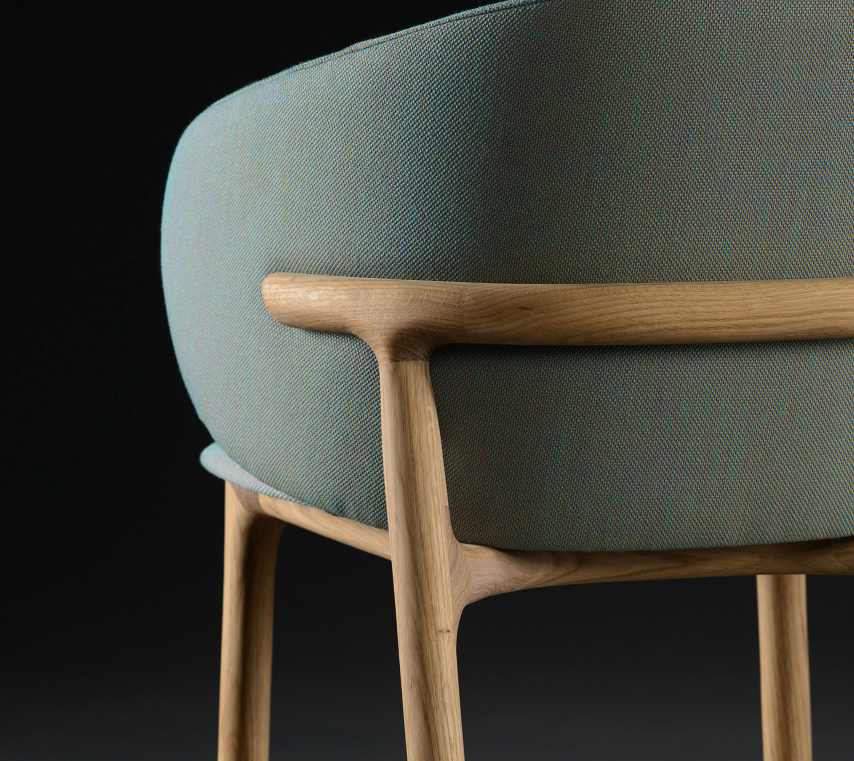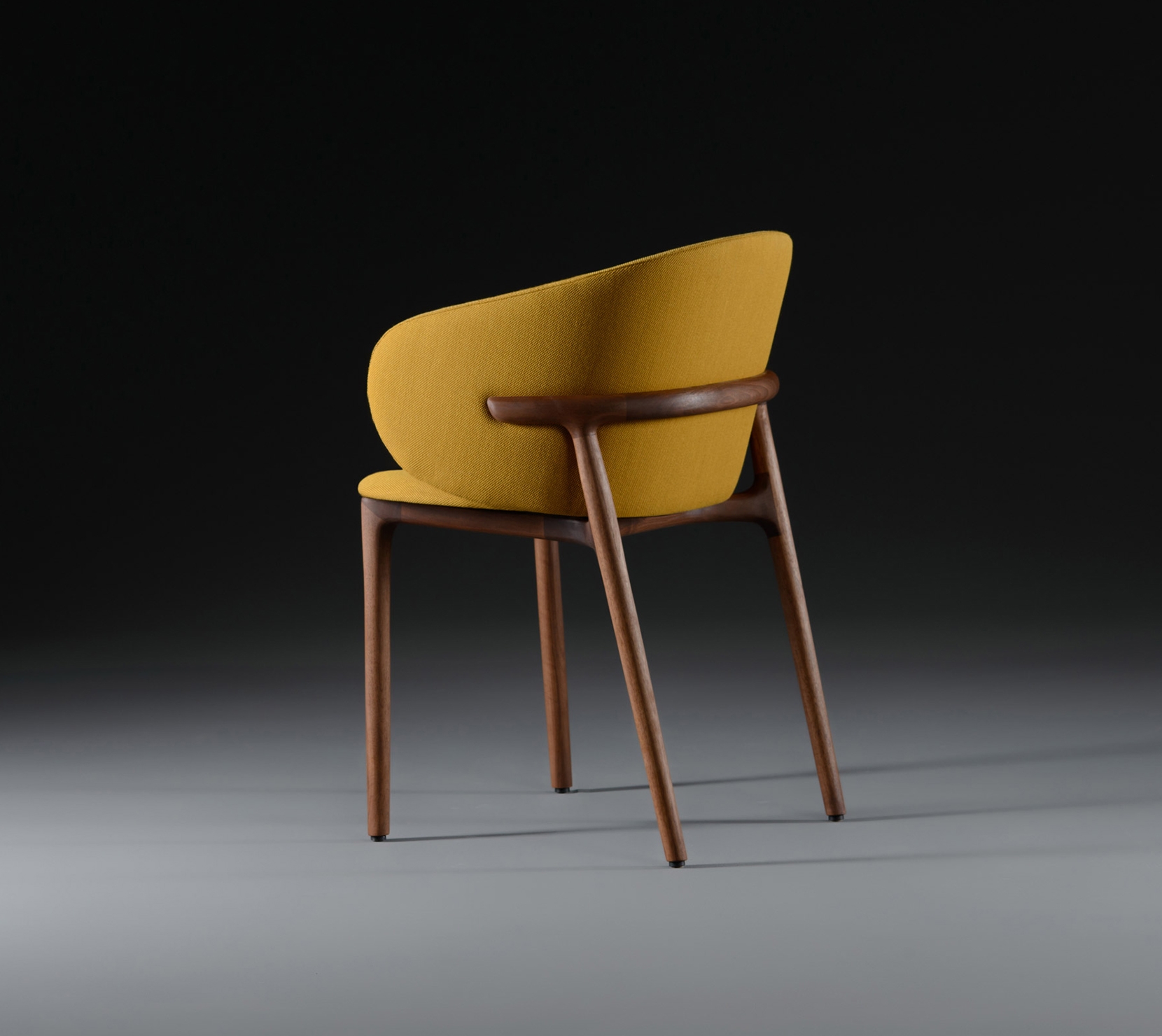 Mela 是張個性鮮明的扶手椅,將一體成形的椅墊結構與木頭支架結合成我們熟知的椅子造型,創造出獨具美感的一張椅子。