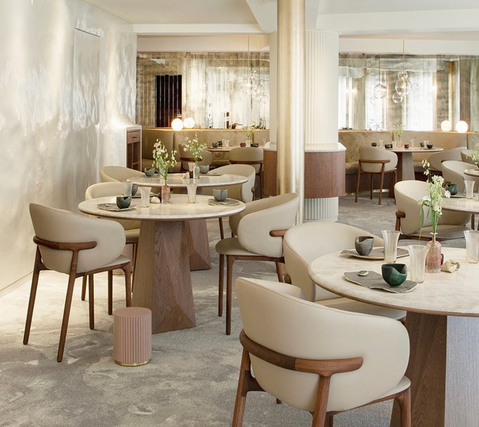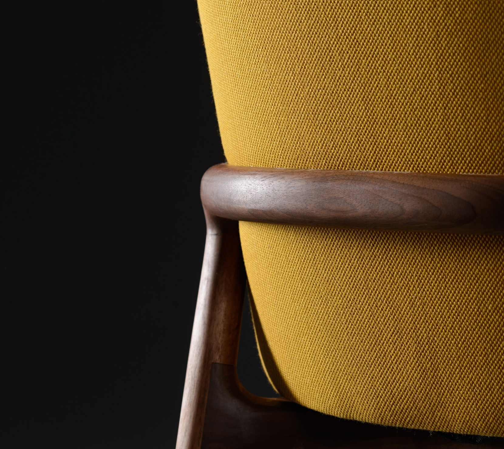 木質的椅架包裹著布質或皮革的椅墊結構,明明是相對元素,卻從中創造了完美的共鳴。
