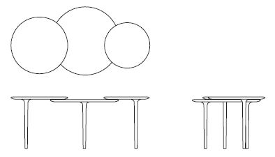 Triple coffee table 實木桌身,由三個相連的小型圓桌組成,這些圓桌圍繞中央桌旋轉,可以根據自己的喜好將它們佈置成一個構圖,打造最獨特優雅的設計感。