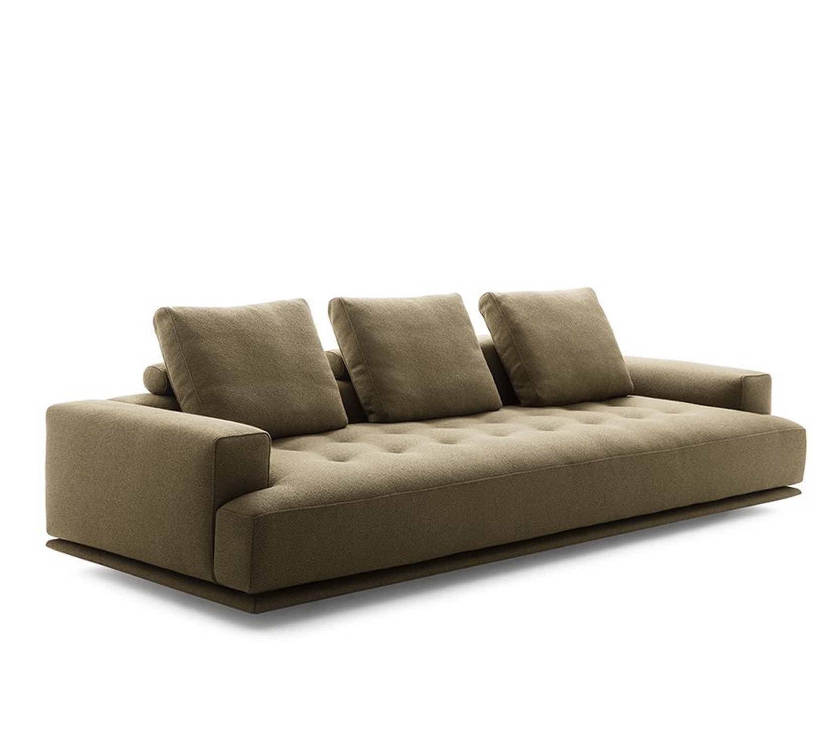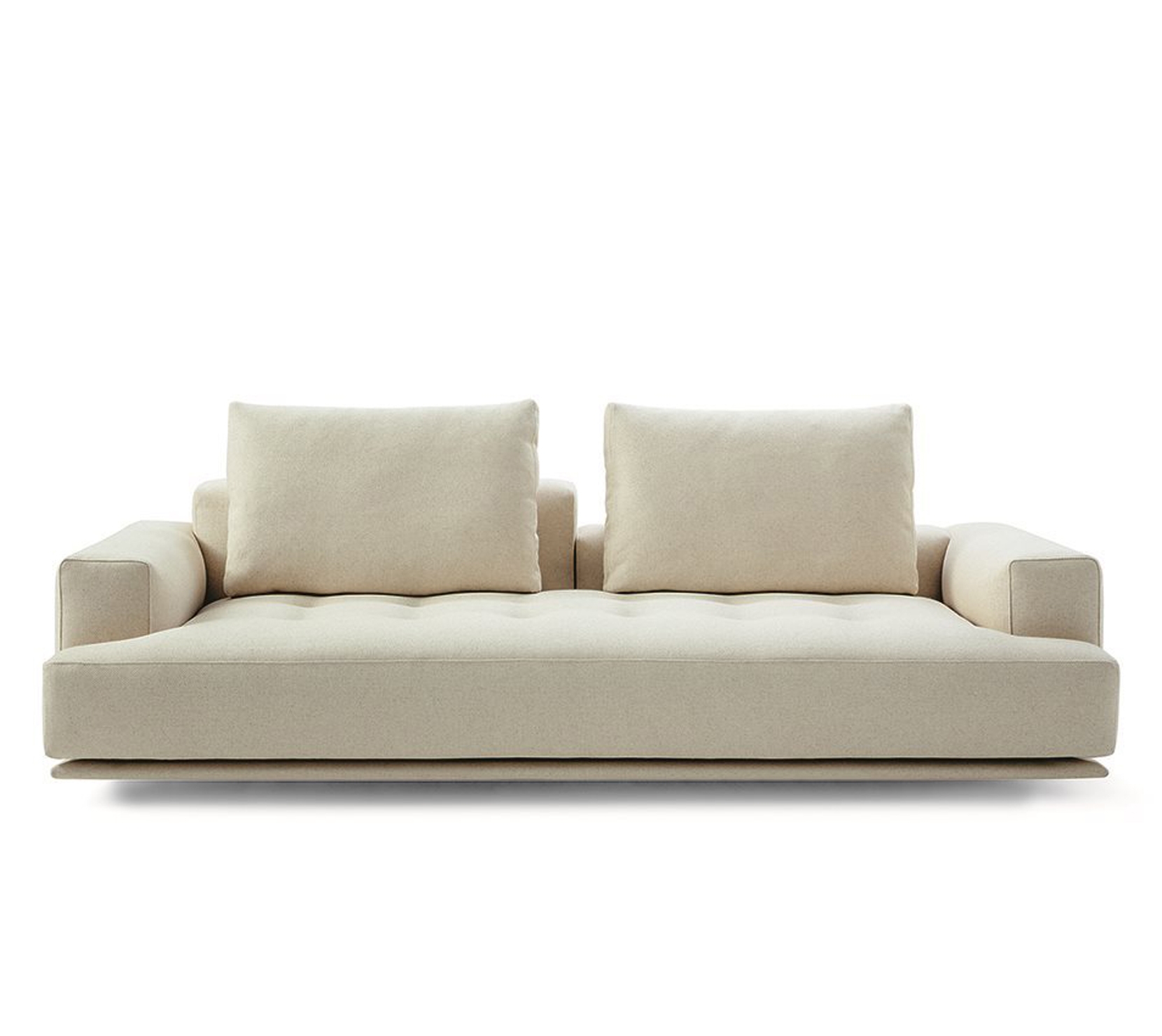 以傳統日本蒲團簡約風格為設計靈感,這款沙發不禁令人聯想到軟墊木底座上安放厚實床墊的景象。
