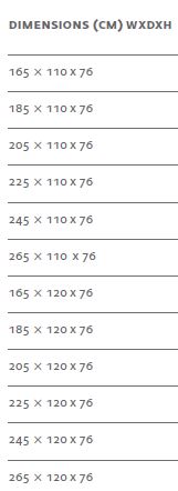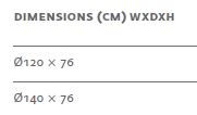 W 165-265 cm H 76 cm D 110, 120 cm Ø 120