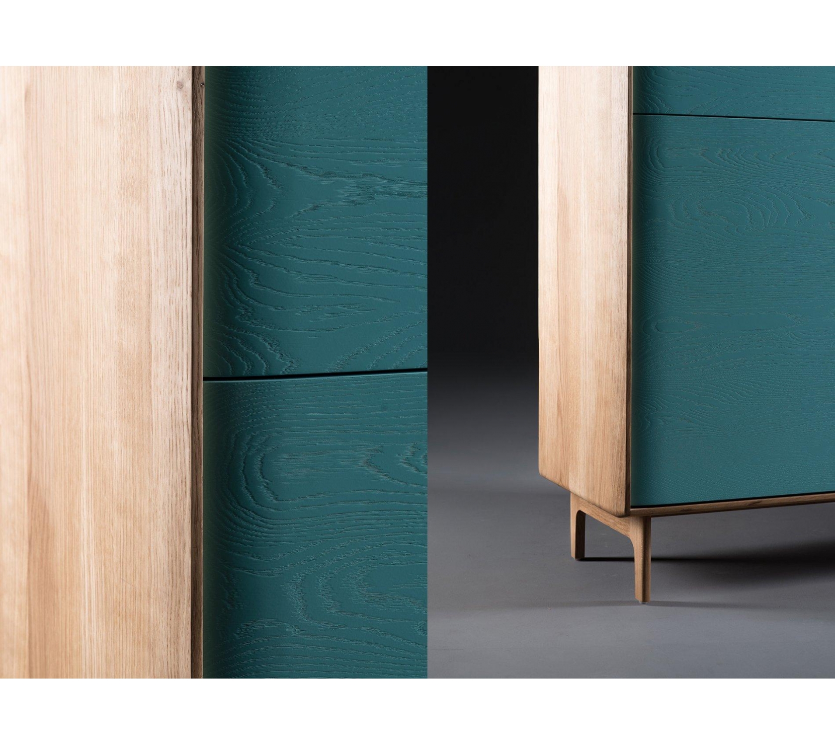 Invito Lowboard 前方的面板則可以選擇實木或上色實木(顏色多達10種)。