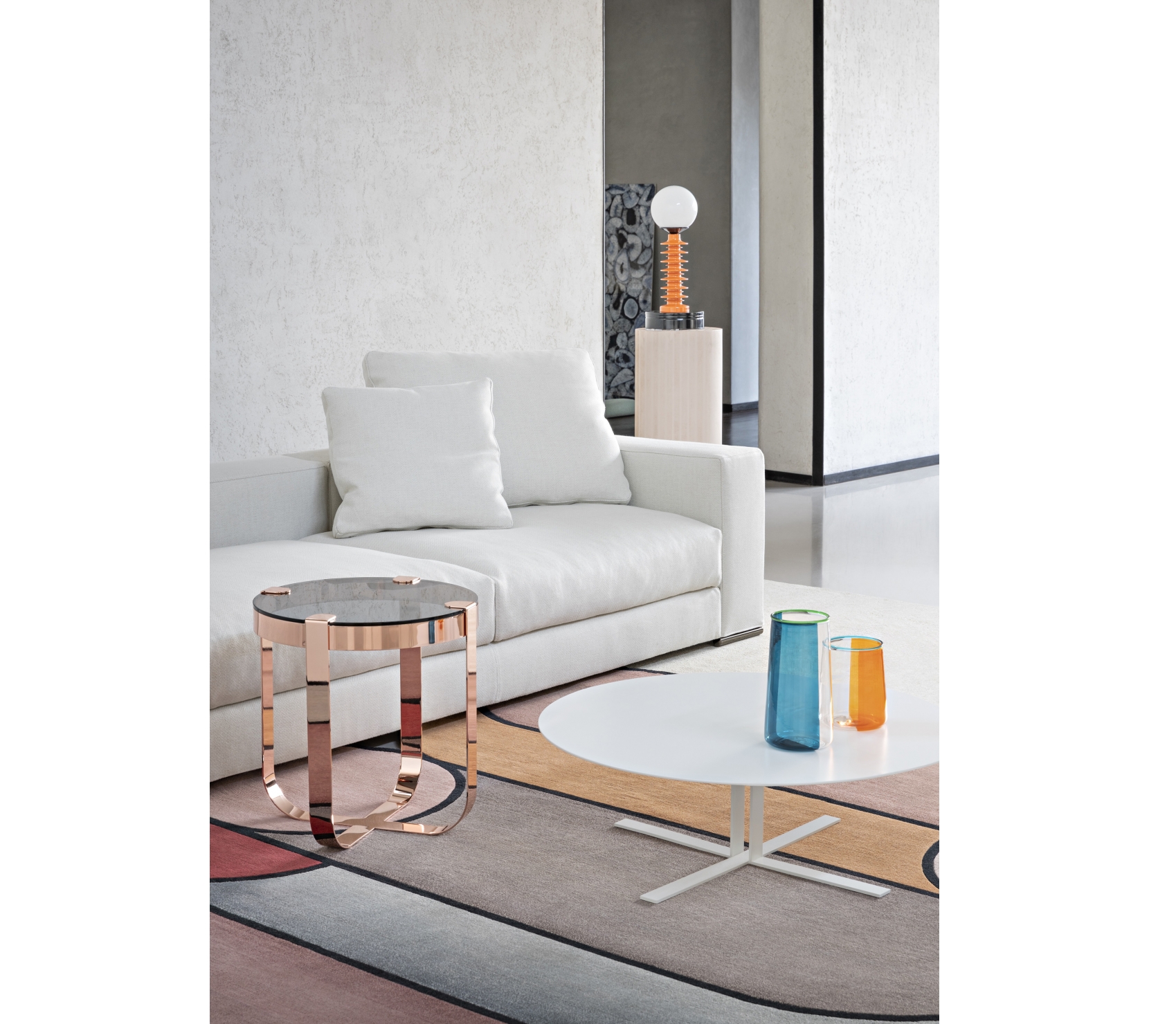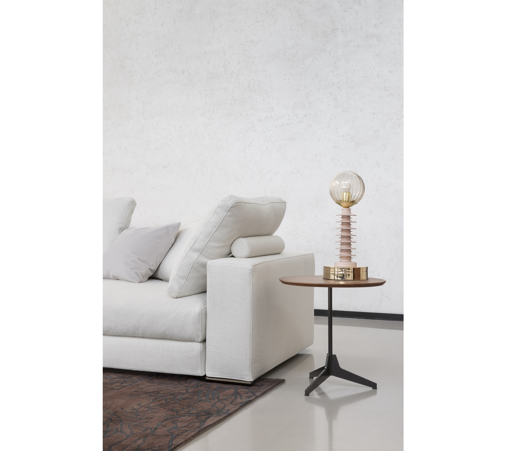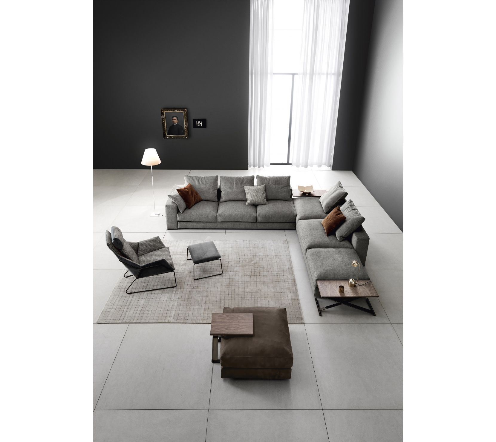 Ananta Class是一款調整彈性很大的模組化沙發,可選擇˙80,120,160,200和240 cm長度的獨立靠背和底座的組合,以簡化結構為設計概念,不受扶手及靠背部分的限制,能自由調整外觀組合,提供無限想像空間,打造專屬自己的風格。座椅可搭配兩種尺寸的邊桌,以黑色鍍鉻底座支撐著胡桃木貼面或再生皮革的桌面。而沙發外罩是可拆卸式的,方便清潔維護。