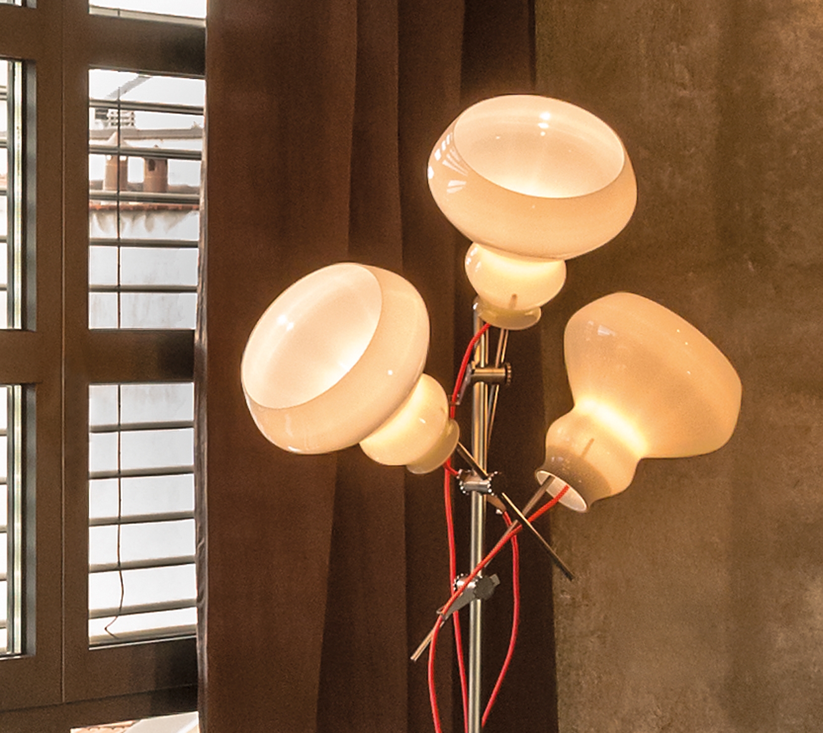 Blob燈在現代風格或古典風情的空間中都是相當的合適,外觀上散發著強烈的個人品味,無庸置疑是一個創新的作品。可依照個人需求,選擇地燈、吊燈、檯燈來搭配,由於重新詮釋了大自然的彎曲形狀,彷彿於空間內創造了自然原始的風貌,金屬支架可彈性調整高度與旋轉,而支架上的三組玻璃燈罩,讓光線均勻地透過不同角度散發柔和光芒,也可藉由不同高度的調整,創造不同的光影變化來點綴空間。