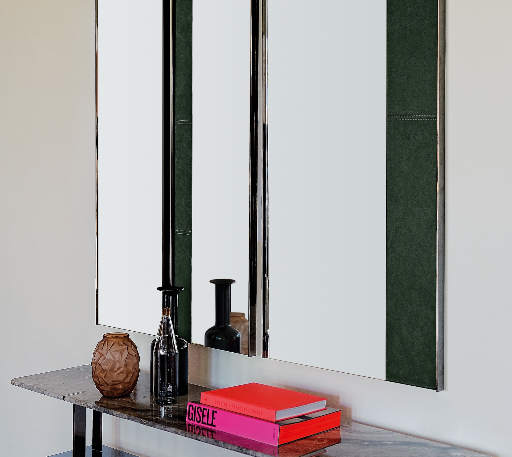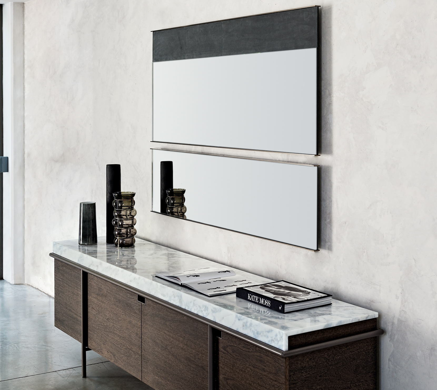 Dorian是款運用玻璃和其他材料的混搭家飾,簡約優雅,其鏡面或煙燻表面看起來像一塊美麗的幾何畫布,並以皮革條紋設計,增添了豐富的質感。
