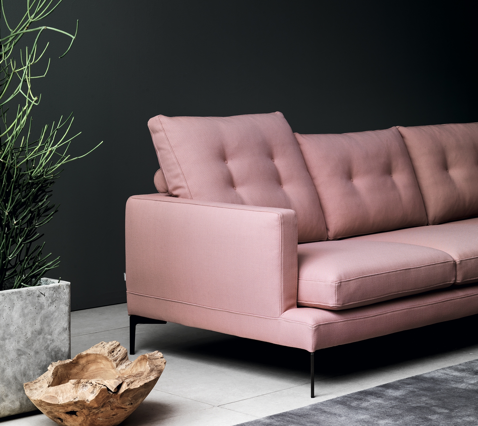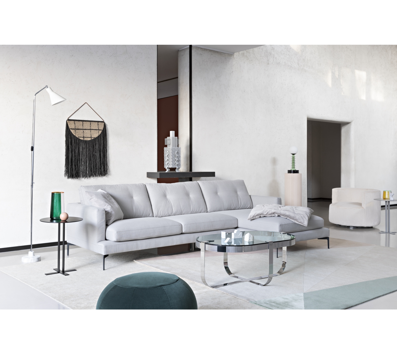 Essentiel沙發在設計上追求整潔、溫馨,因此將純淨的斯堪地那維亞的線條與傳統的義大利風格融合。沙發提供多款規格尺寸:154 - 190 - 220 - 250 cm,每款都可搭配不同家具配件,而其對細節的注重也明顯的表現在靠背墊的縫線或羅緞飾邊等處,以極簡款式散發出精緻魅力。