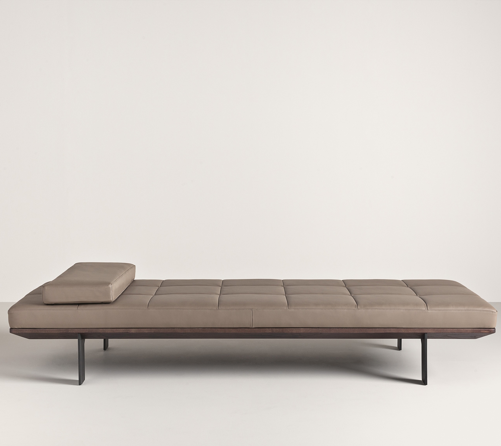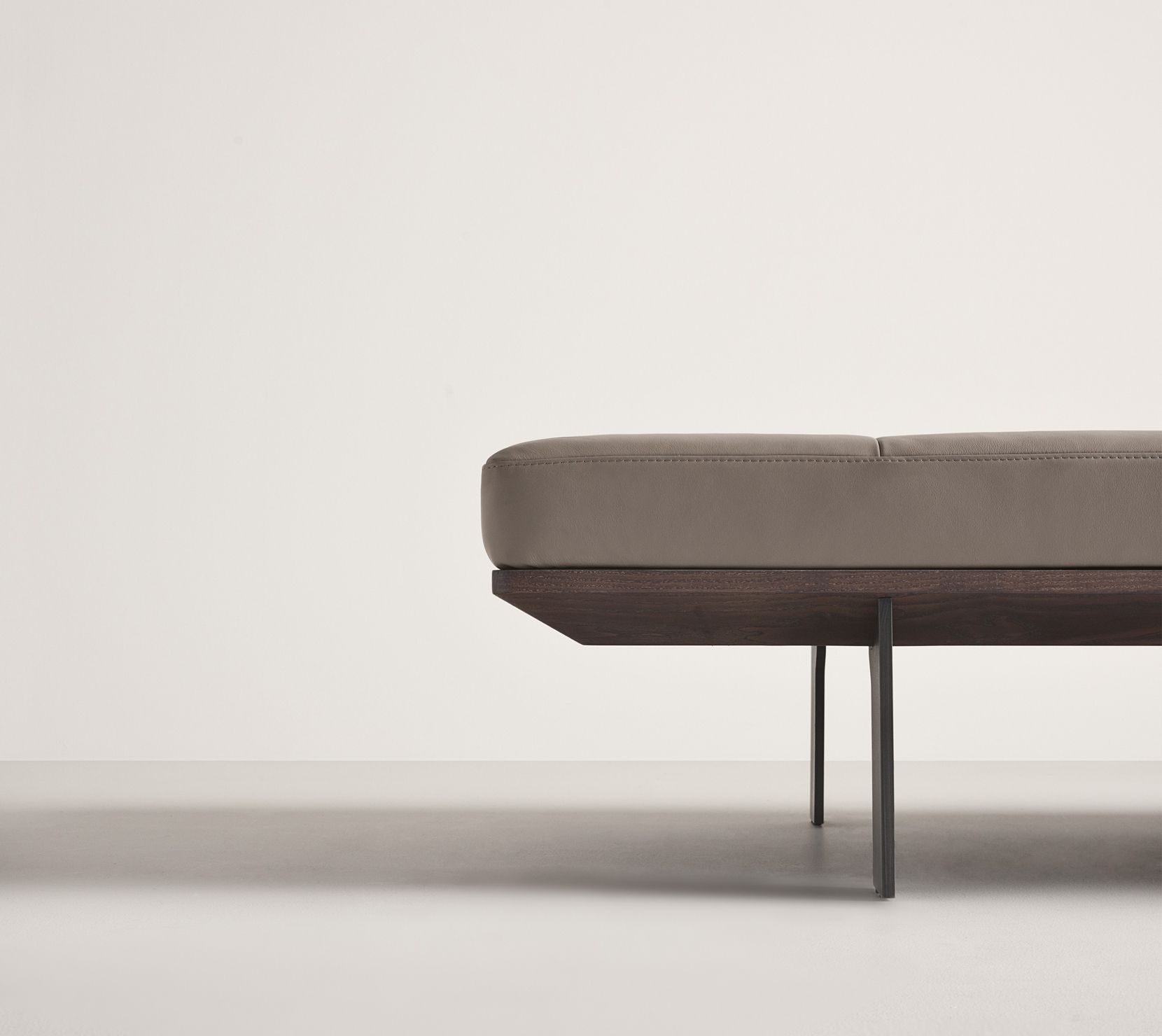 HUDSON 沙發床,外觀簡約簡樸,選用胡桃實木,金屬椅腳則使用拉絲深灰烤漆,椅墊則使用特殊織法。