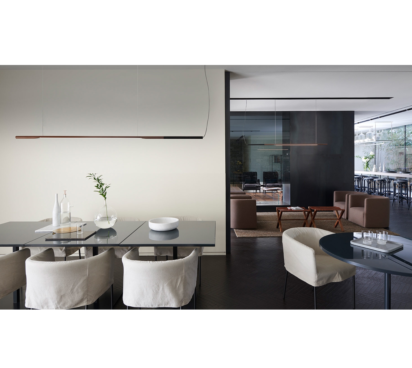 簡約的線條、剛毅的金屬,Ilo 吊燈詮釋現代奢華的藝術風格,隱藏在纖細鋁管中的光芒,為家刻劃出品味不凡的場域表情。