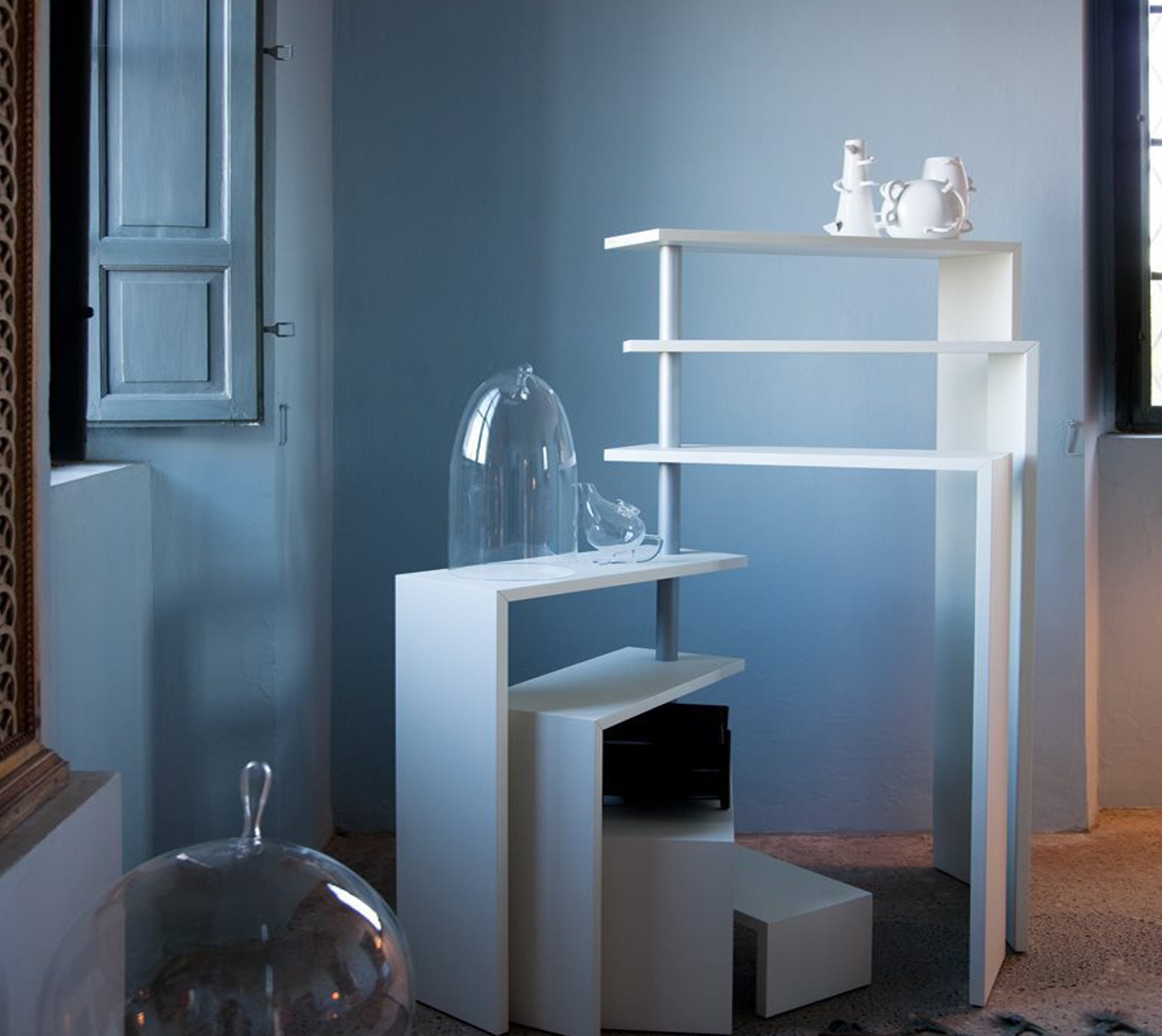 Joy的獨特之處在於擱架的旋轉運動,充分體現極致簡約設計理念:以鋼管製成的垂直鉸接柱為中心,多個擱架可沿水平方向自由轉動。
