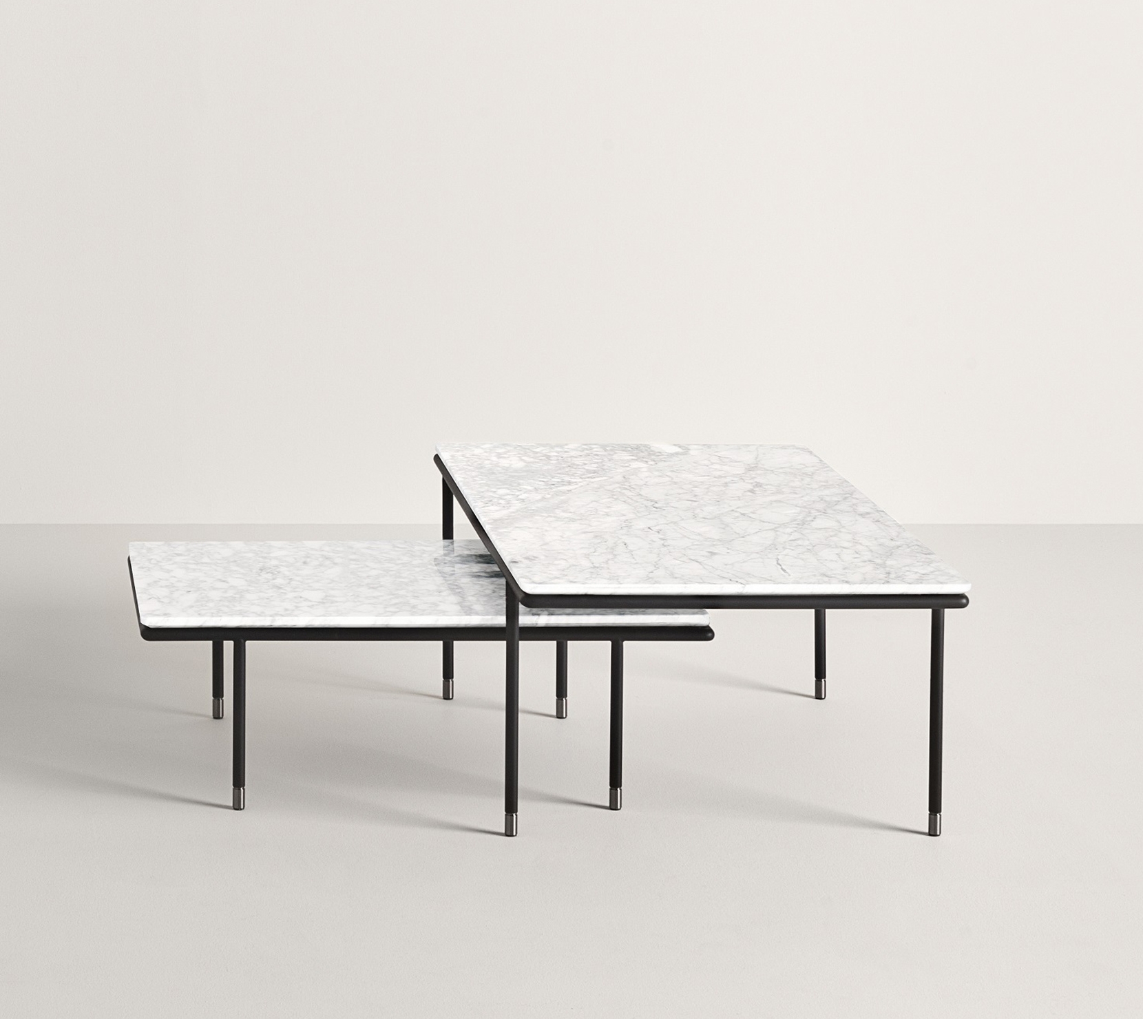 SQUARE系列邊桌,採兩件式設計,外型簡約素雅,以黑漆金屬結構為基,搭配輕薄大理石材桌面,透過纖細優雅的設計形式,淡化原本石材的沉重感,以輕巧的形式訴說異材質的沉穩與質感。