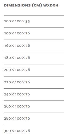W 160-300 cm H 76 cm D 100 cm