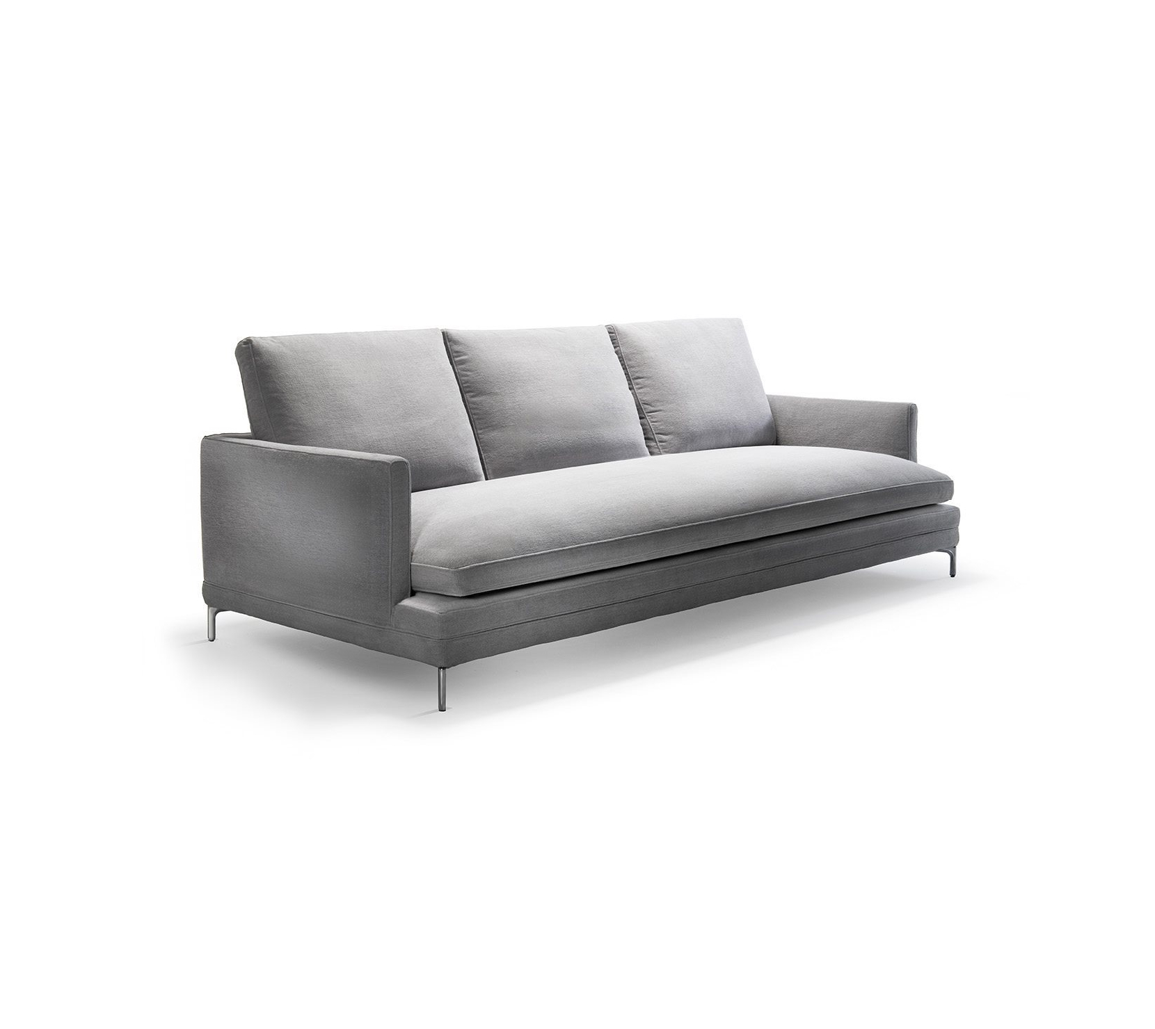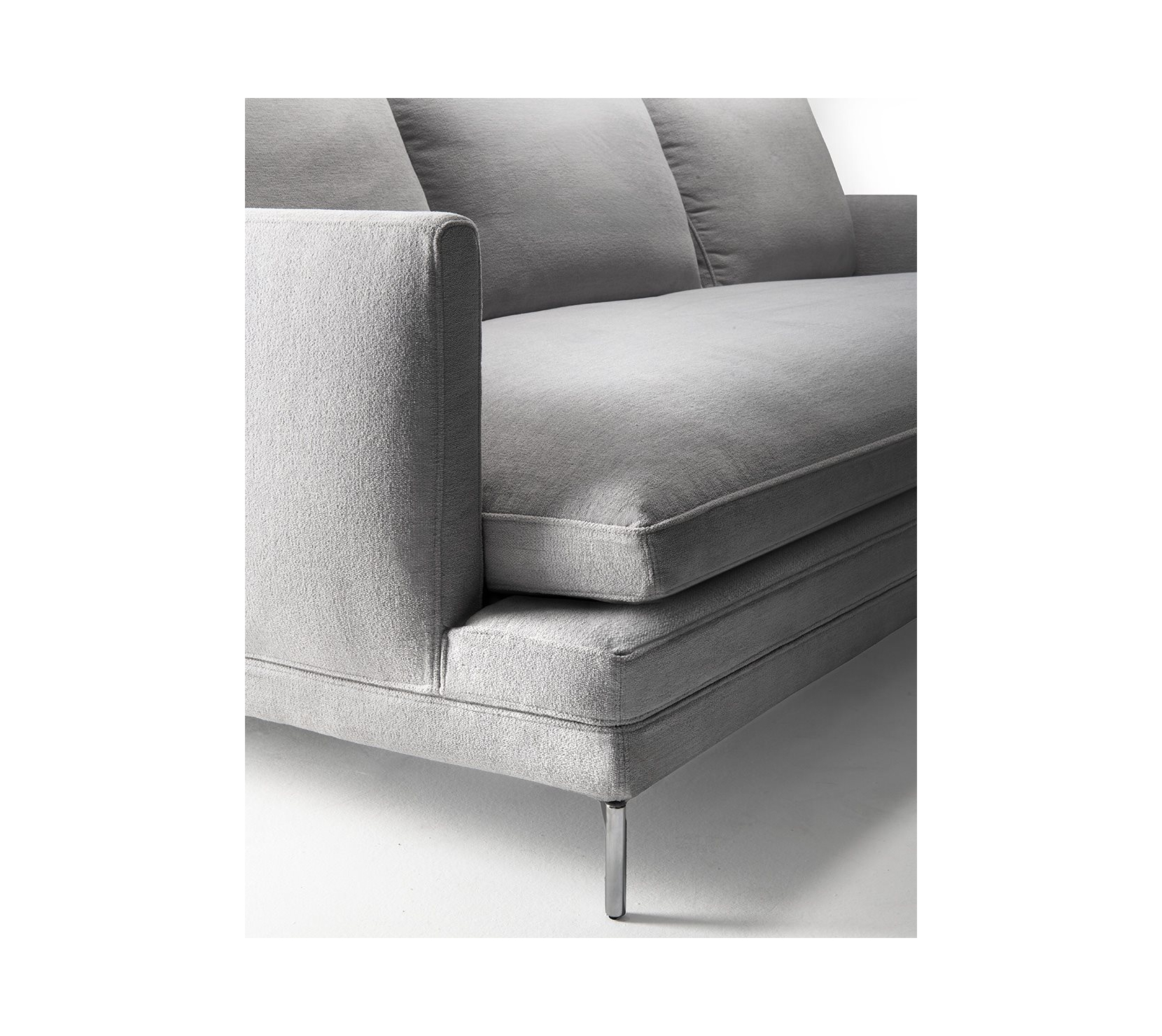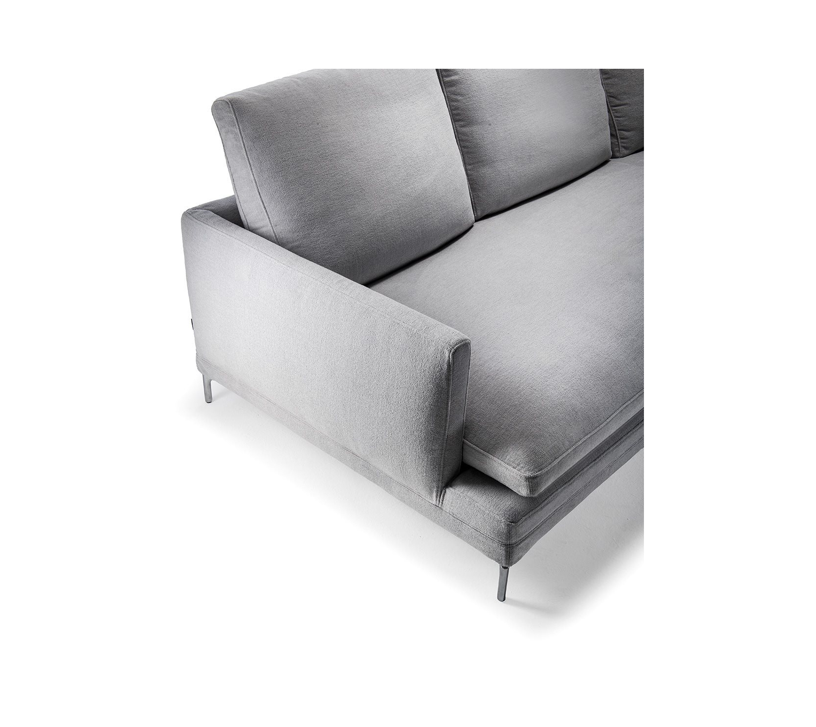 鋼製骨架搭配彈性織帶支撐,座面採漸層密度聚氨酯與熱合聚酯纖維層疊填充,背與扶手以自熄性聚氨酯包覆。
