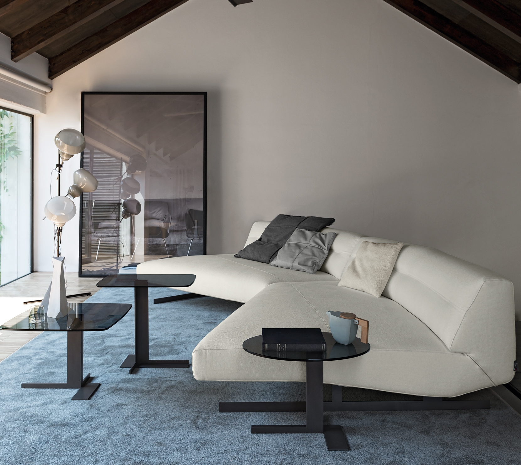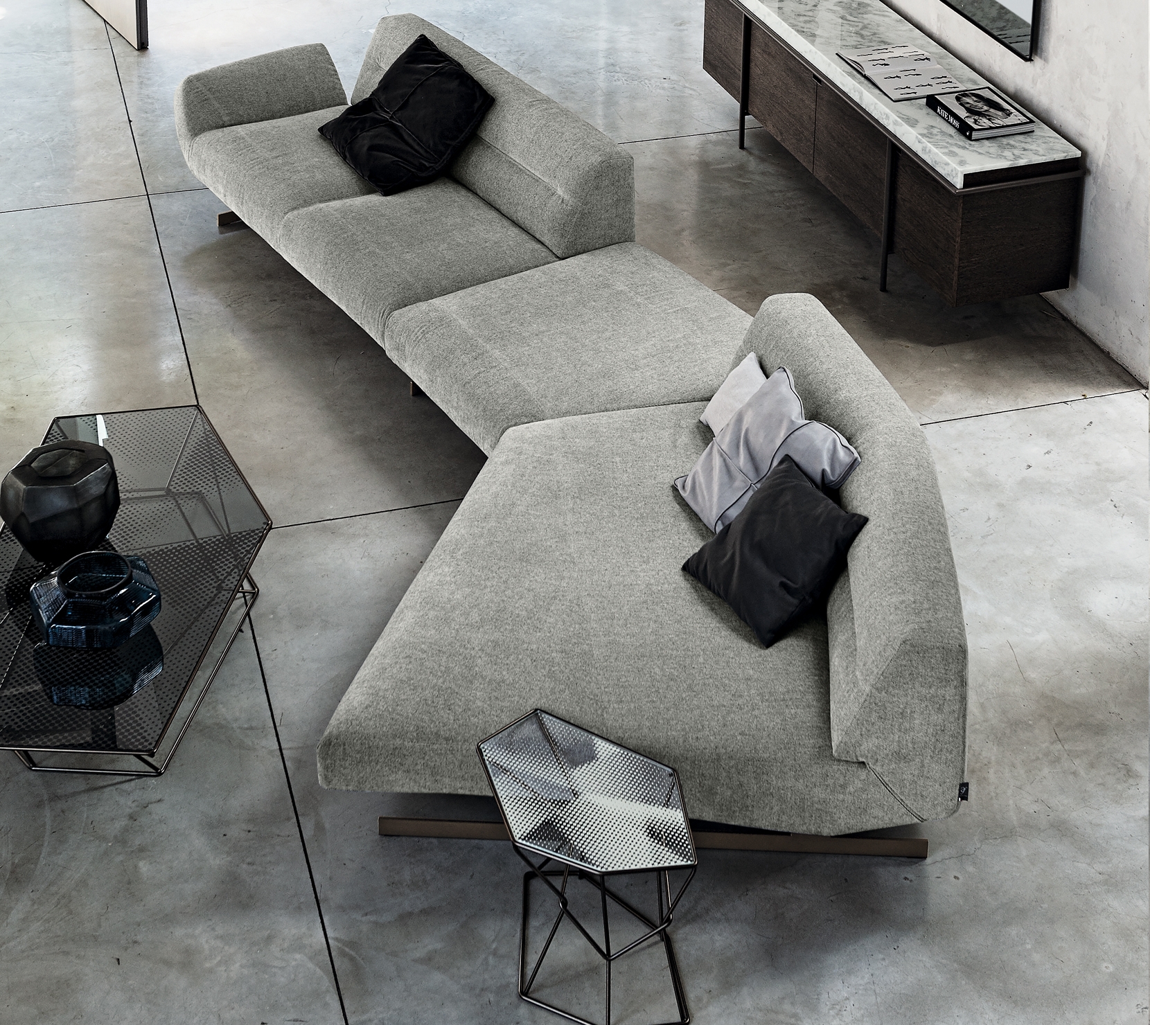 Nash是款相當有未來設計感的現代沙發,有著充滿動感和不對稱的線條,幾何形與線性元素的完美搭配,賦予其一種強而有力又堅定的個性。扶手依稀傳達出空氣動力學的獨特形體,與纖細的底部支架相對比,給人強烈的輕盈感與精緻觀感。Nash為2017年新推出的款式,有著各種形狀,可相互兼容搭配,使其成為非常靈活且多變的沙發組合。 為了更時尚前衛的外觀,後背處的縫線可選擇使用特殊金屬拉鍊來替代。