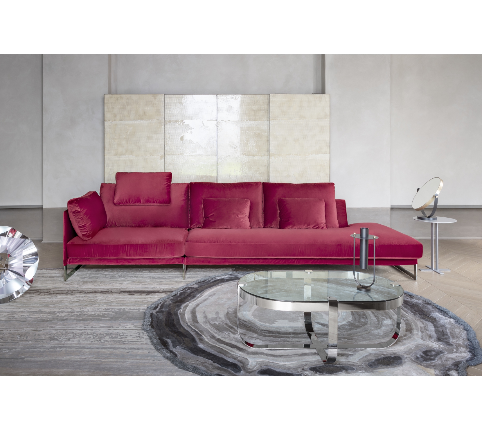 Livingston沙發的設計特點在於能靈活地調整靠墊,透過簡單的調整,能輕易將其變為舒適的頭枕貨是背靠墊。柔軟的座墊由堅穩的輕鋼底座支撐,以輕柔/穩固形成強烈對比。而巧妙的拉鍊設計、可調節靠背及其特有的長型座墊為Livingston提供了獨特的輪廓與現代居家風情。