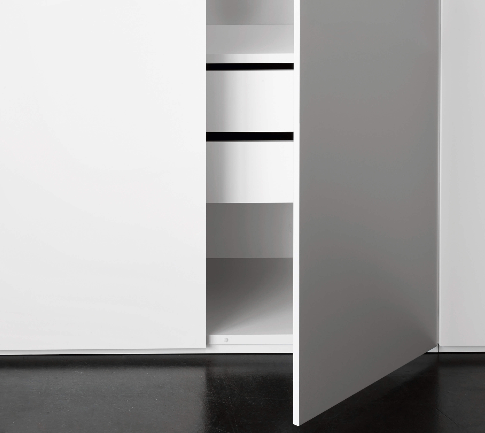 NEX PUR WARDROBE有著優雅精緻的外觀,極大容量的裝載空間,精巧的衣櫥手柄則是由鋁製成。充滿彈性化的選擇,可以挑選多達九種的不同高度組合,標準高度為211.5CM,深度為36CM。既可作為完全開放的架子,也可作為帶門和抽屜的衣櫃。 每個架子都可作為一個獨立完整的形式,也可以單獨放置。