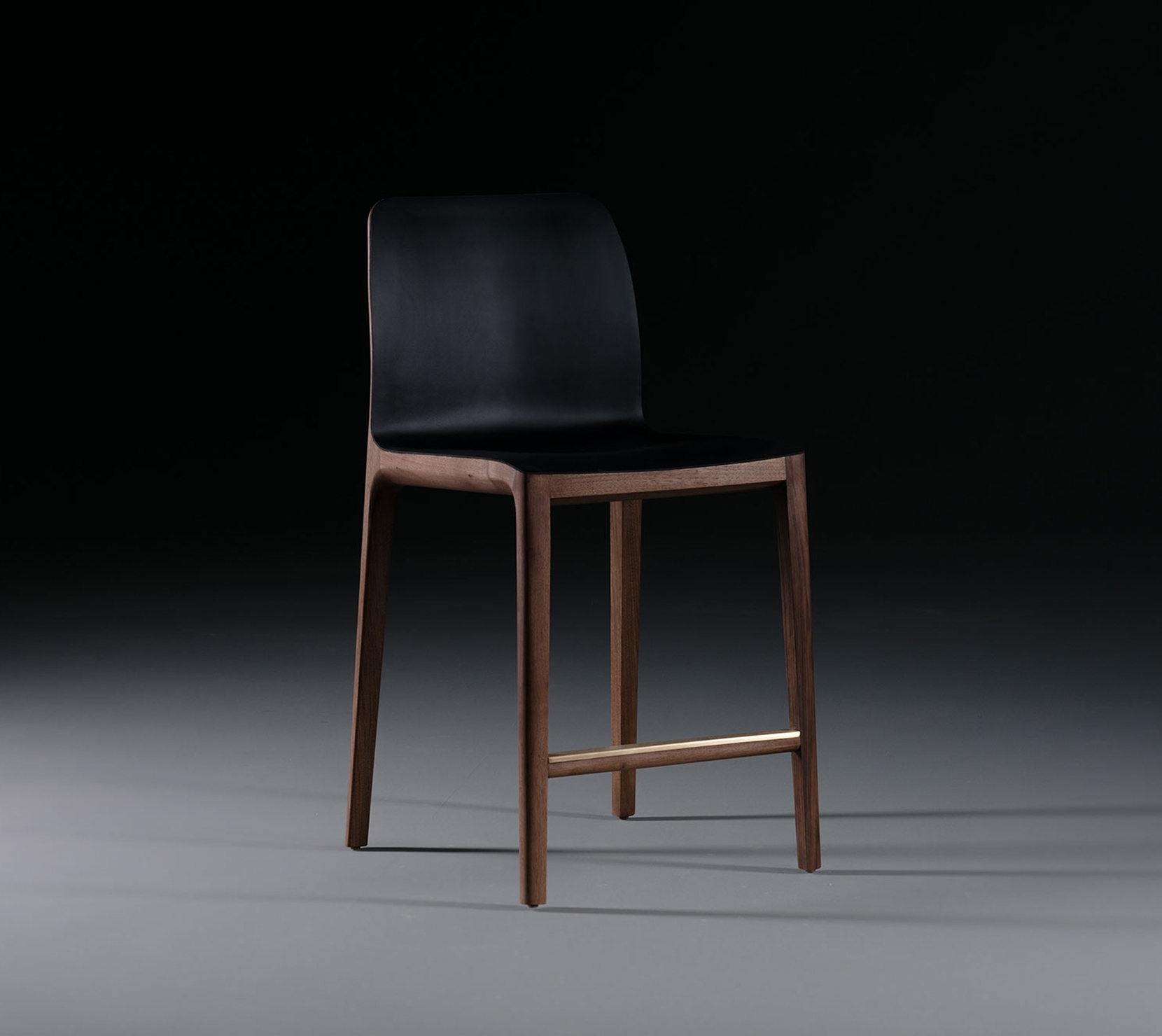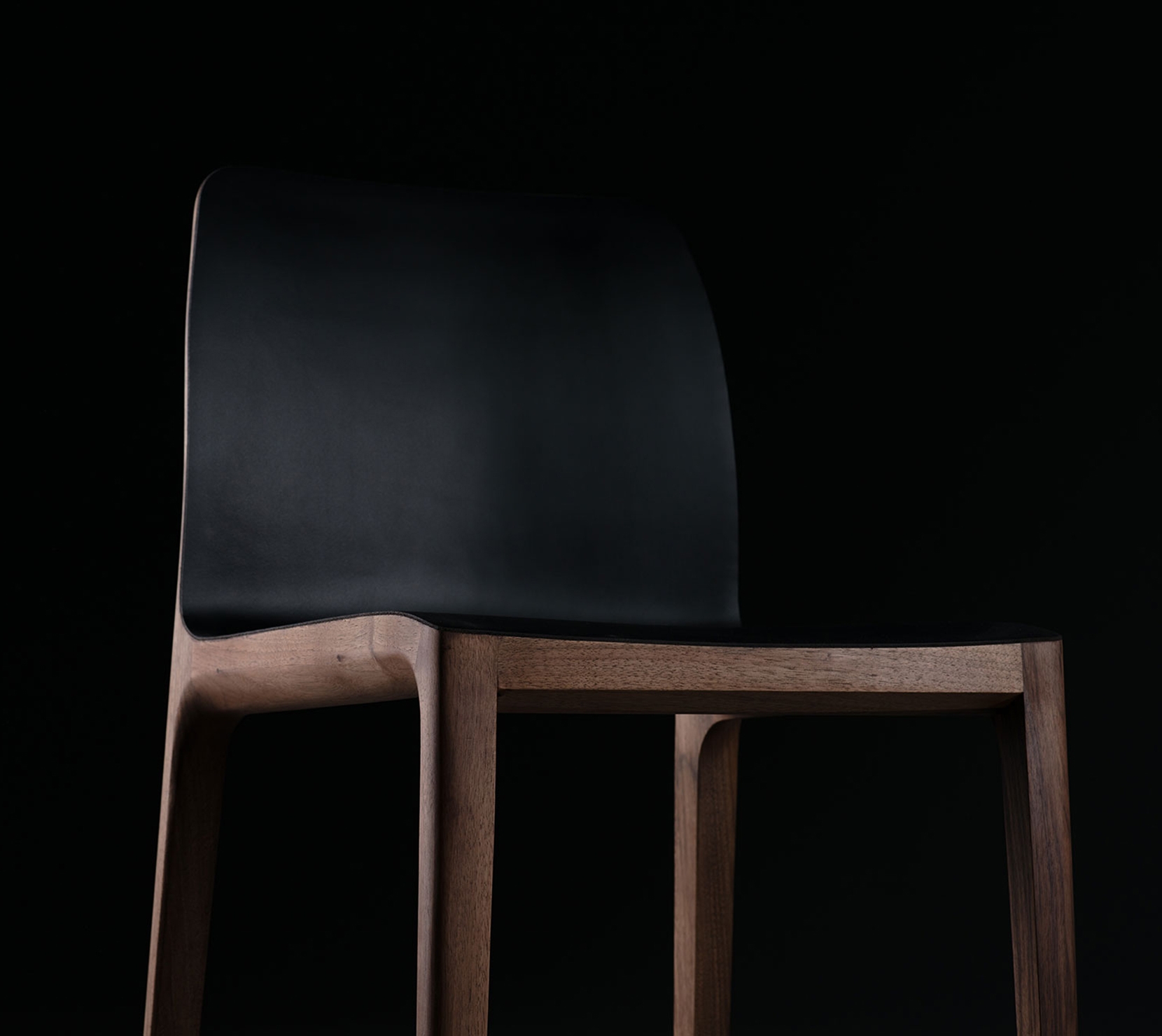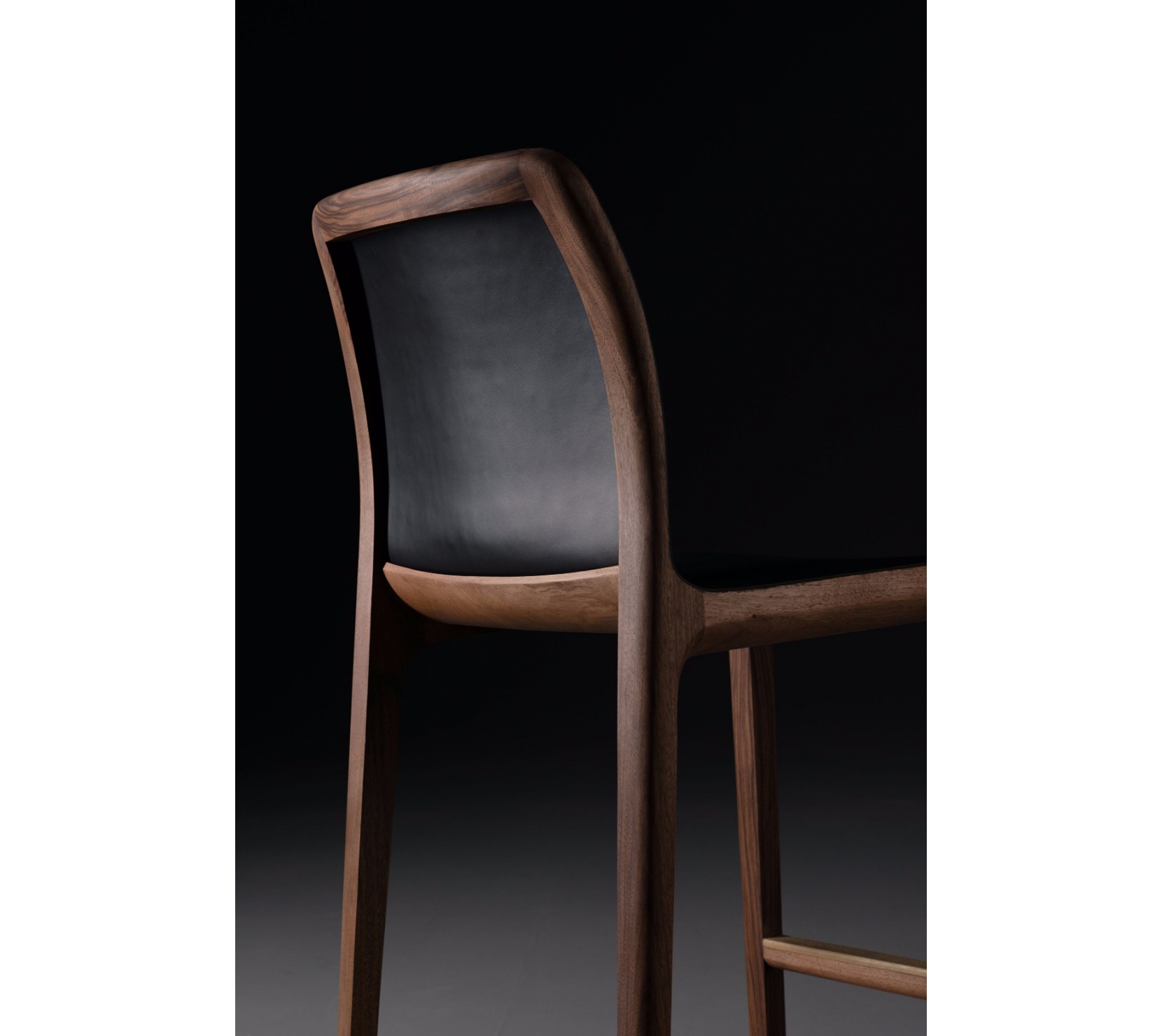 Invito Bar Chair 實木吧檯椅,具有柔和的木材線條以及時尚的皮革座墊和鑲有黑色皮革的靠背,經工匠悉心打磨,光滑圓潤,以獨特的弧面設計打造最獨特優雅的設計感。