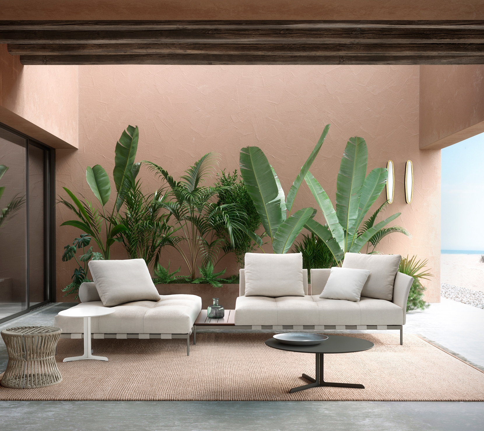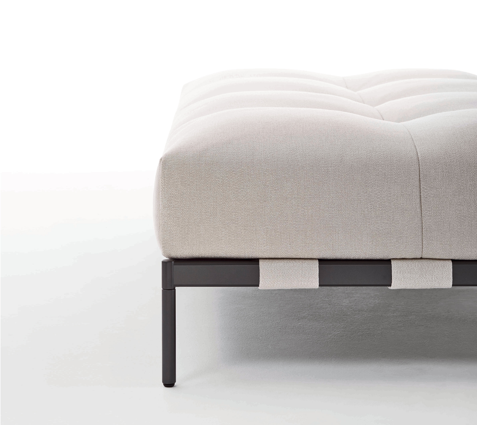 Pixel Light 系列跳脫以往的貼地設計,將底部架高,結構選用耐腐蝕性的鋼,而坐墊方面新增全新的排水技術,以利室外環境的置放,打破了沙發對室內外的界定。