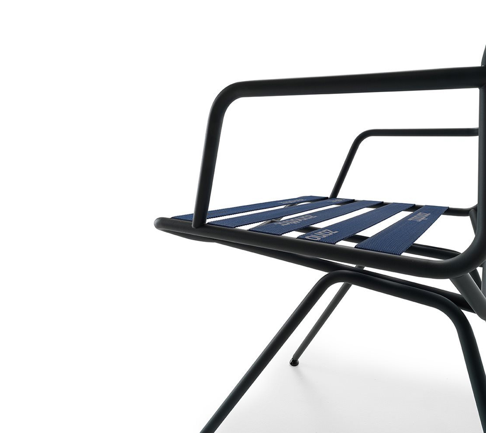 Dan 系列 2057 / 2508 在外觀設計較偏向於室外椅,不同於包覆型的單椅,觀感及觸感上較為清涼,材質上選用富含彈性的聚酯纖維搭配鋼製支架,椅帶顏色多樣,而支架也有鐵灰及啞光黑供選擇,能因應不同的居家風格。