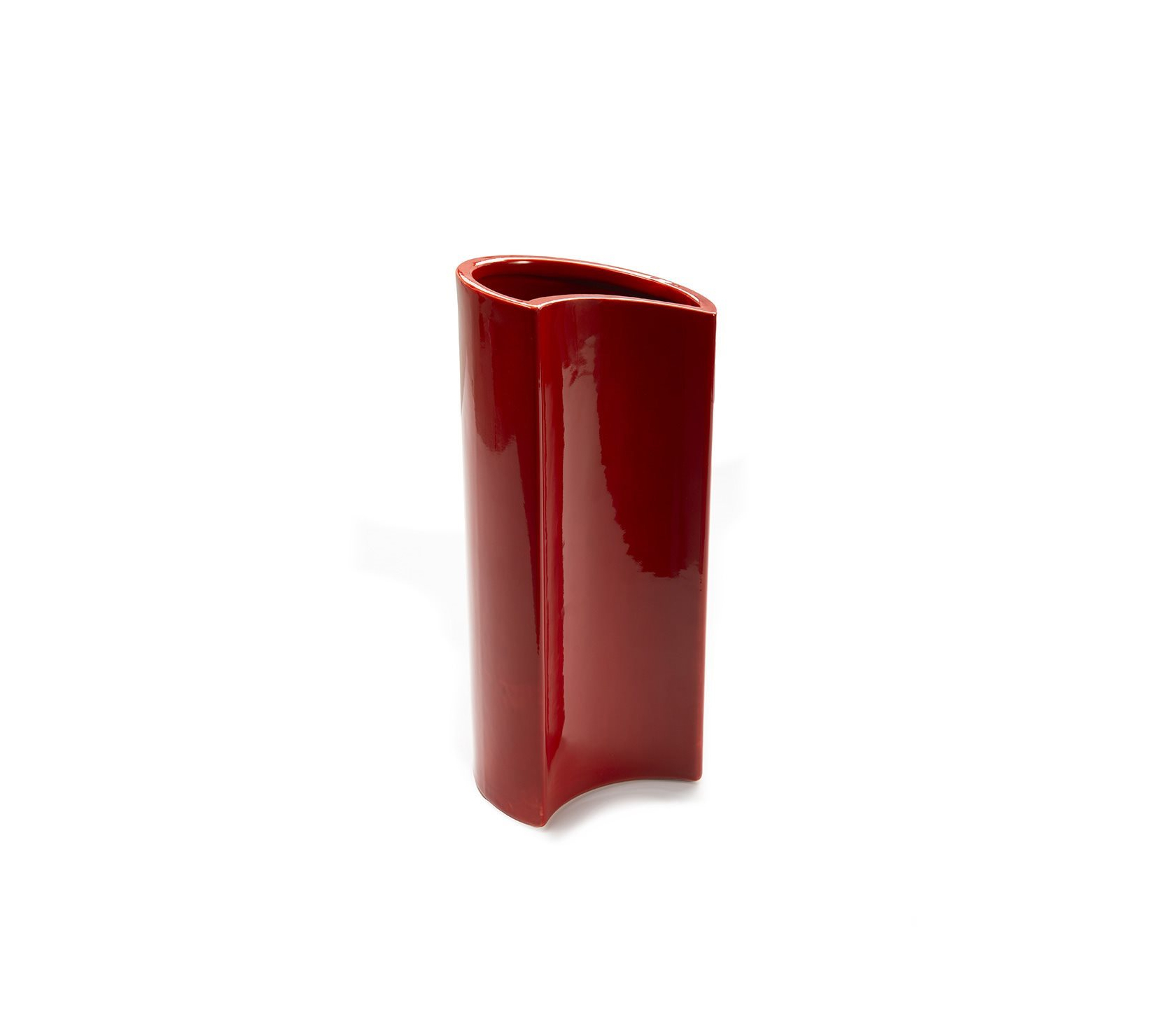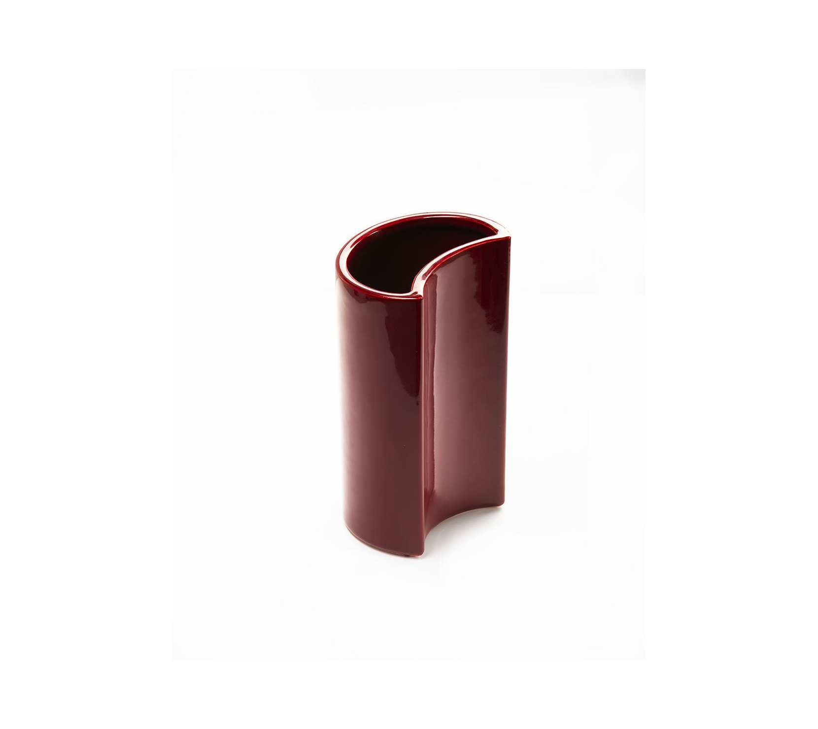 陶瓶選用拋光上釉陶土燒製,提供粉、深藍、紅與酒紅四色,飽和色塊在光線下映出柔潤釉感,既具雕塑性,又能獨立成景。