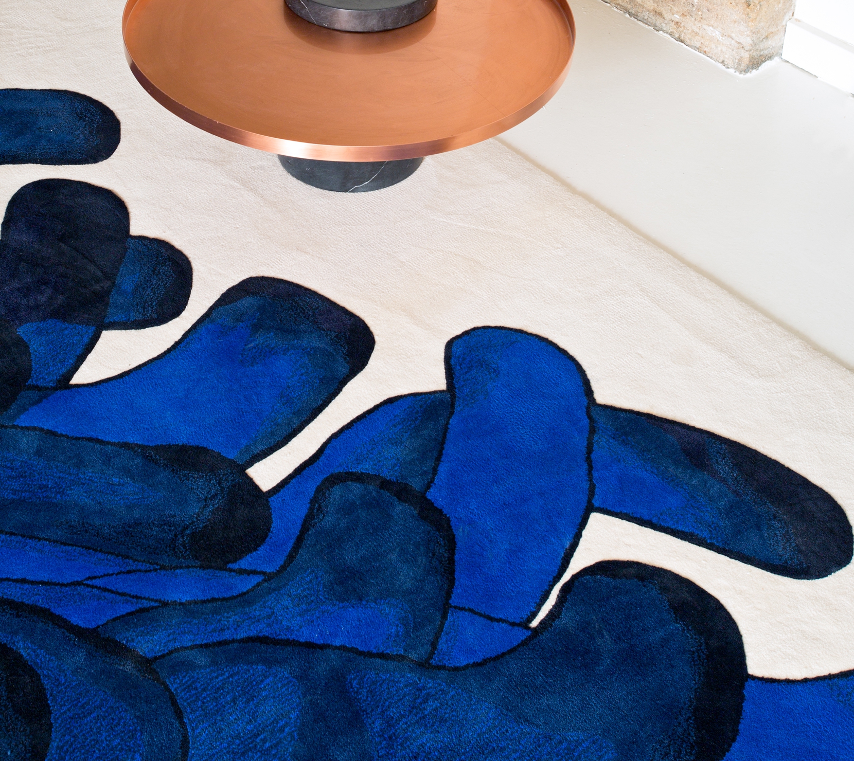 Anemone地毯,繪製的靈感來自於運用筆觸模仿海葵運動的姿態,而地毯本身是由葡萄牙的工匠純手工打造,透過獨特的切割與羊毛裝飾,創造出凸起蓬鬆的設計感。