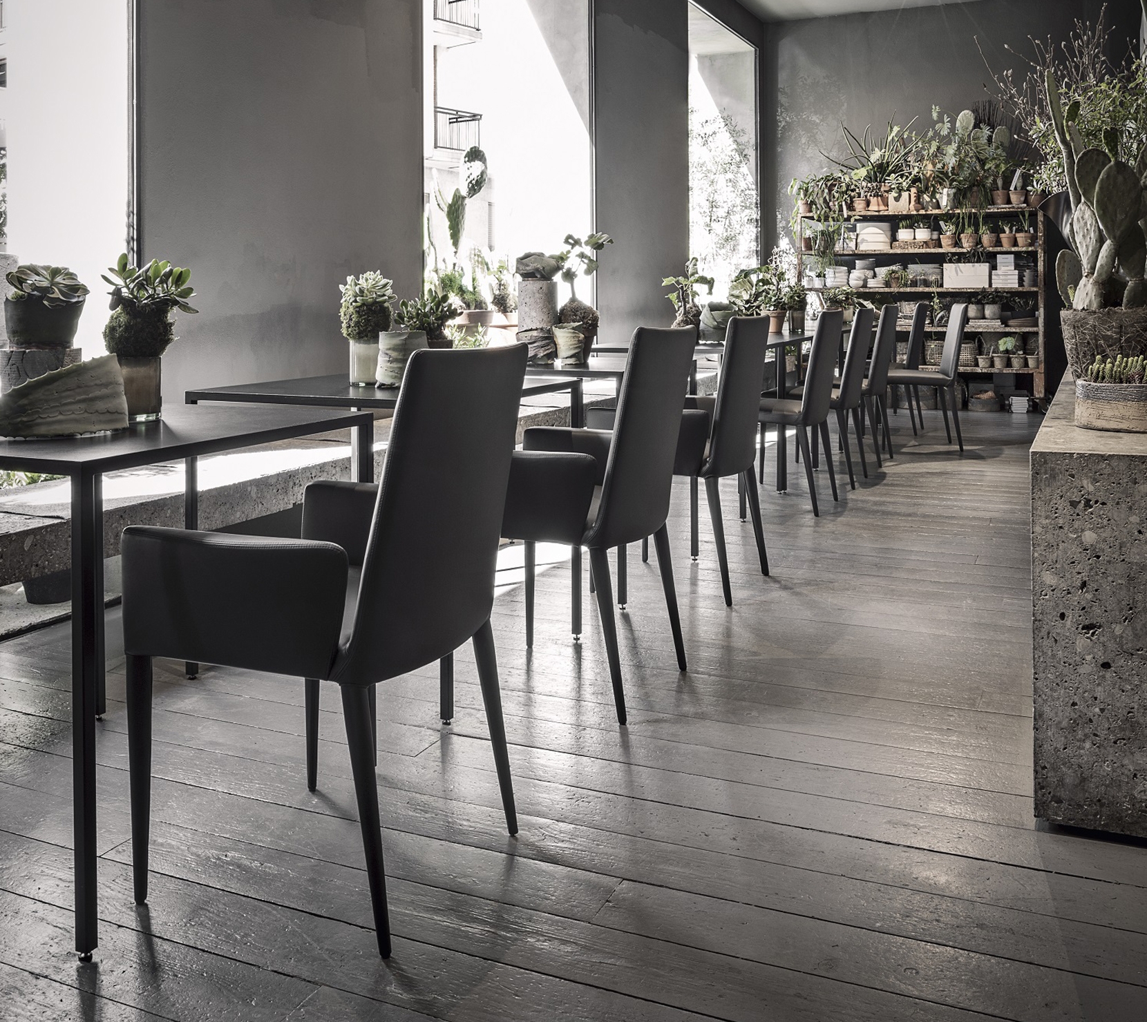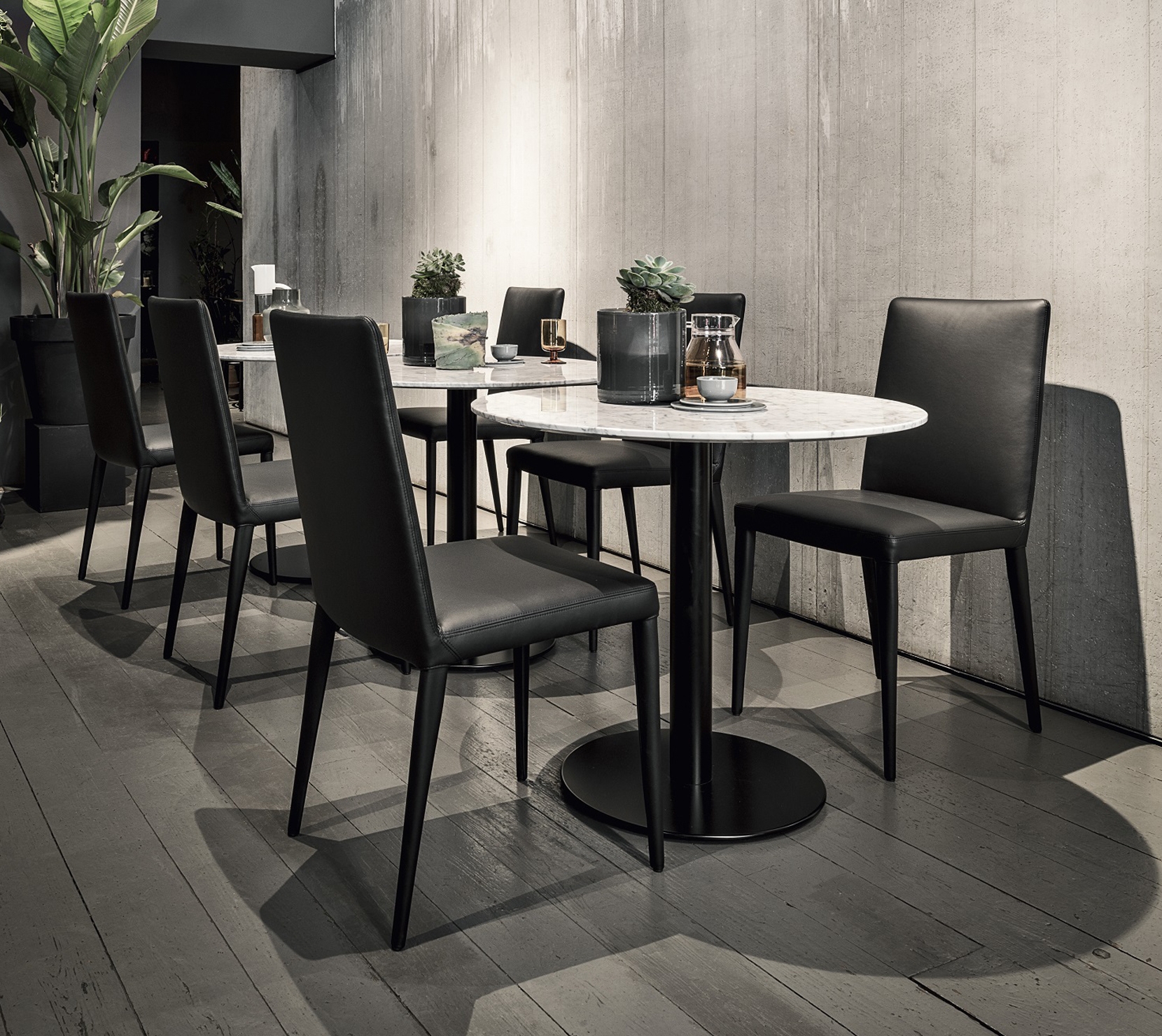 Bella是款低背單椅,有著優雅且細長的輪廓,完美地詮釋皮革椅款的形體,並推出多款系列可挑選,像是有無扶手、皮革椅腿,漆面金屬等不同配套。 背部採用特殊的柔性“記憶”鋼材,將活力的元素運用其中,在美觀與舒適之間找到完美平衡。