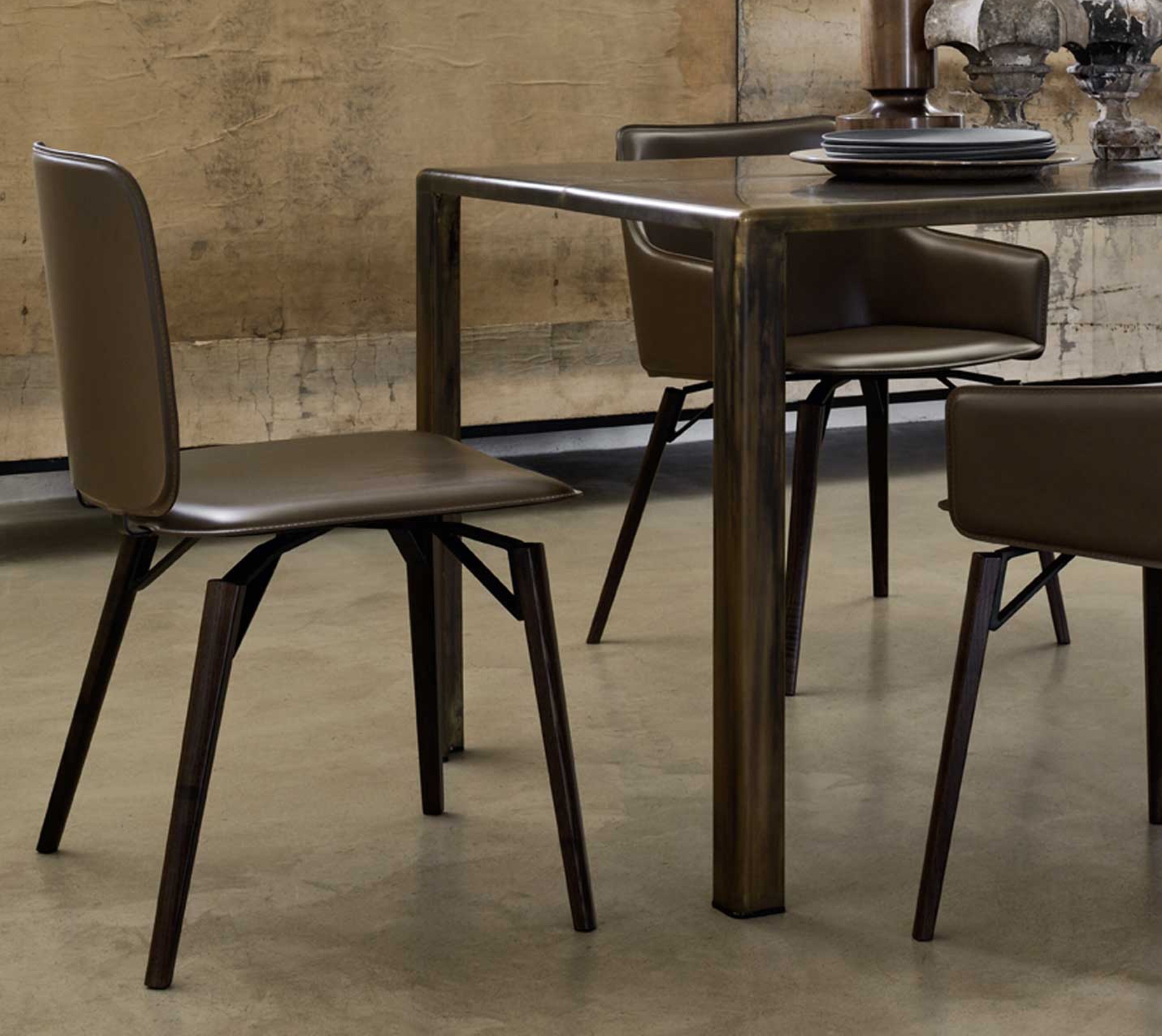IKI W單椅,其背部和座椅採用方形的形狀,也成了此系列單椅最醒目的特色之一,襯墊選用柔軟的皮革或馬鞍皮革覆蓋,提供了極致的舒適享受。底座採用拋光鍍鉻鋼管或是將鋼與胡桃木腿結合的雙材質版本,設計師以嶄新形式,重新演繹傳統單椅形體,流露沉穩內斂的都會風格。